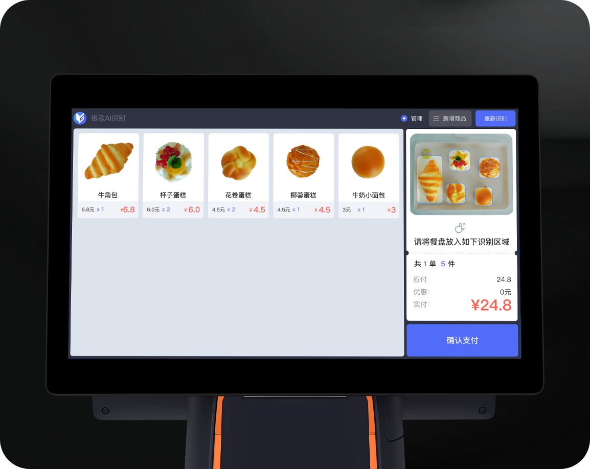 银歌AI4.0 餐饮视觉识别系统,识别准确率99%,最快1秒一单。