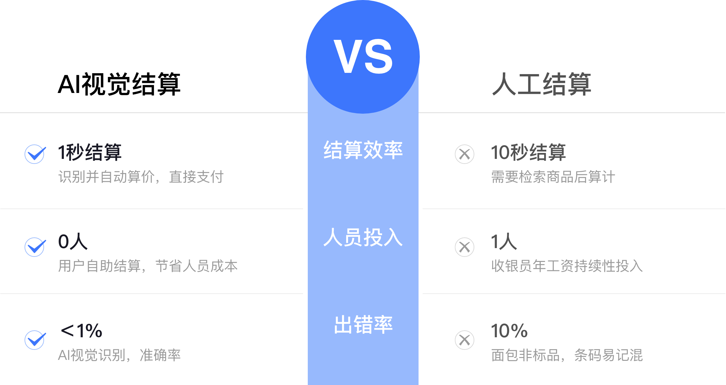 AI自动识别商品自动计算价格,商品识别仅需0.08秒,准确率>99%,免于高峰期人工收银记价导致出错,提升顾客体验助力营业额提升。