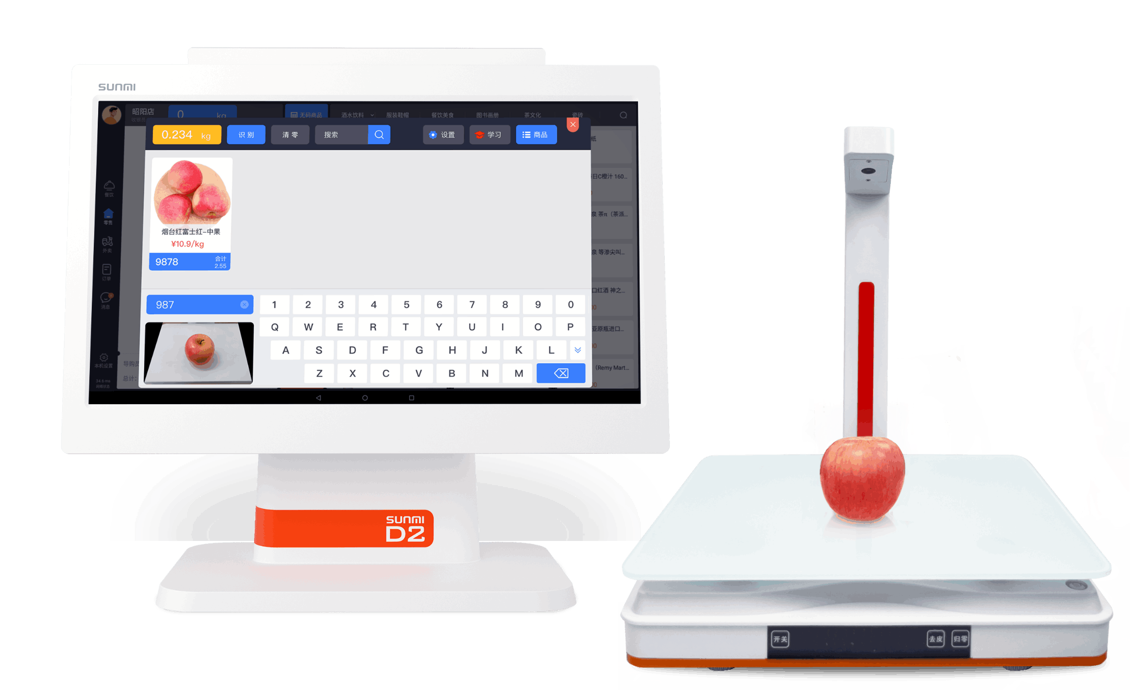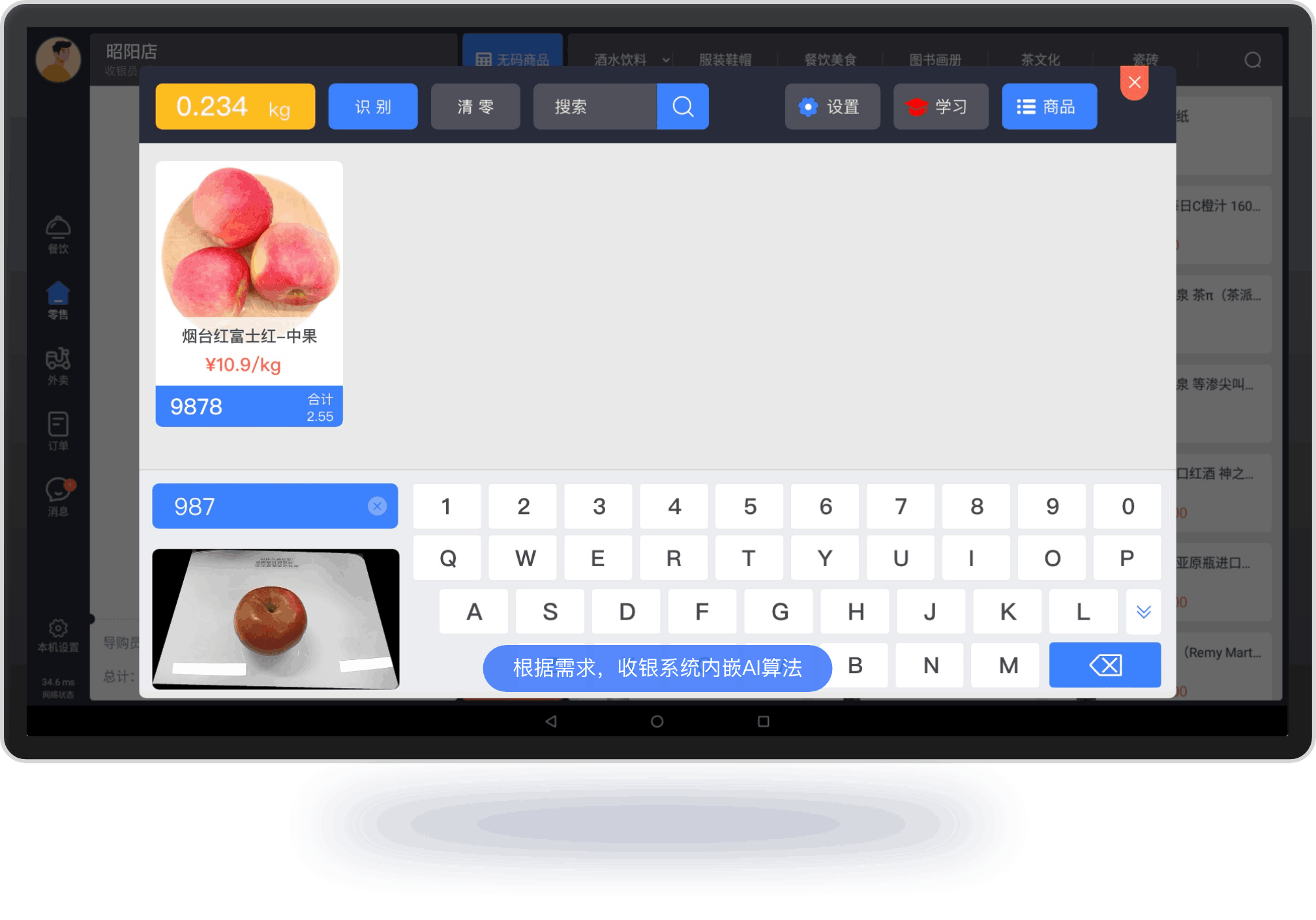 基于现有收银机作为算力,通过USB外接设备实现AI识别称重收银一体化,此方案更加灵活,应用场景扩张性强。