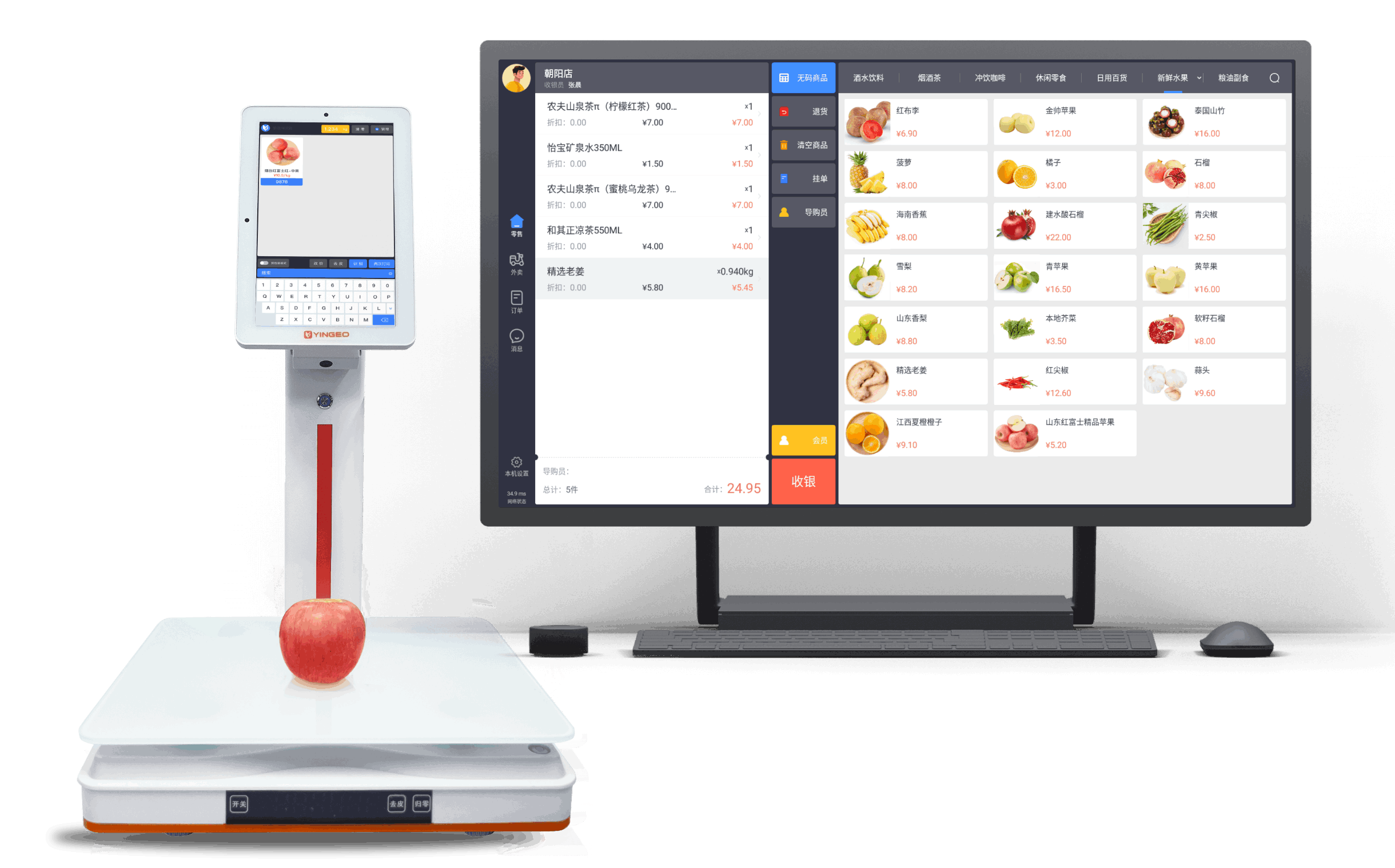 通过银歌AI助手,可与Windows收银设备、PC电脑、笔记本电脑等联动。实现称重、收银一体化方案。